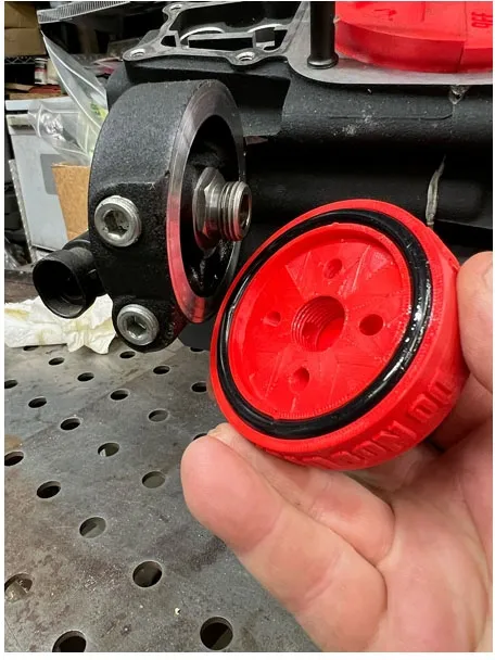 ×Keep the crap out of your engine while oil filter is removed. O-ring sealed with transfer ports that allow oil flow if engine is turned over with cover installed.