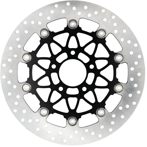 Accossato brake rotors are precision machined high performance floating discs to fit standard 5-bolt H-D hubs.