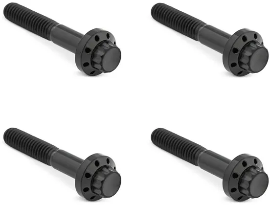 • Each Titanium 12-Point bolt is spot drilled on the bolt head for a radius shaped top & features a lightning hole design on the integrated bolt flange