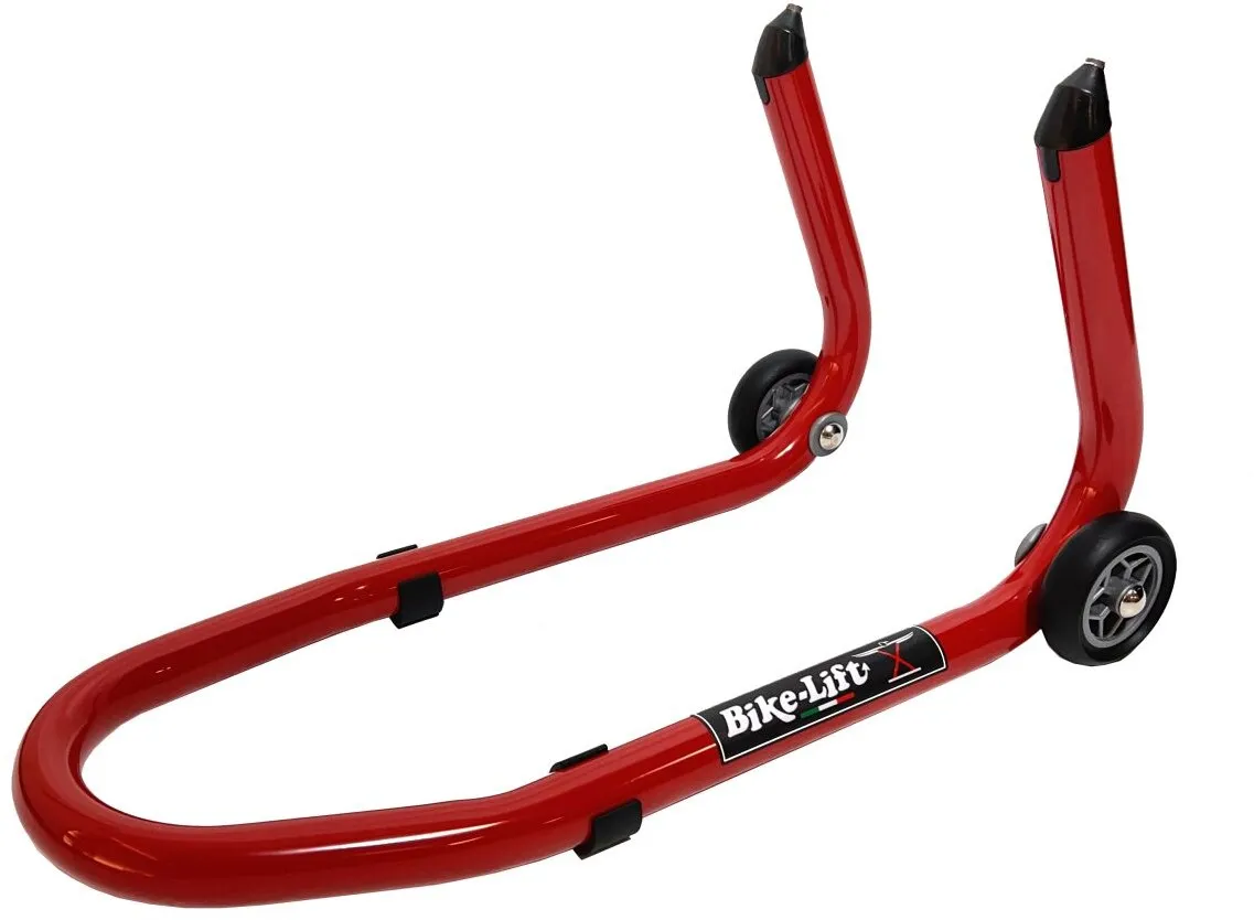 Units: Each Product Name: Stand Material: Steel Model: FS-9 Features: Adjustable Style: Classic Type: Front Fork Application: Motorcycle Mounting Position: Front Color/Finish: Red