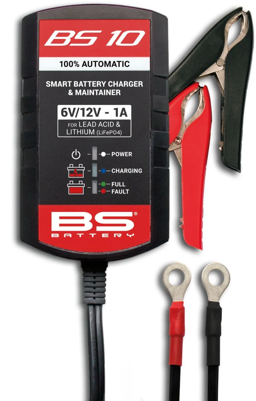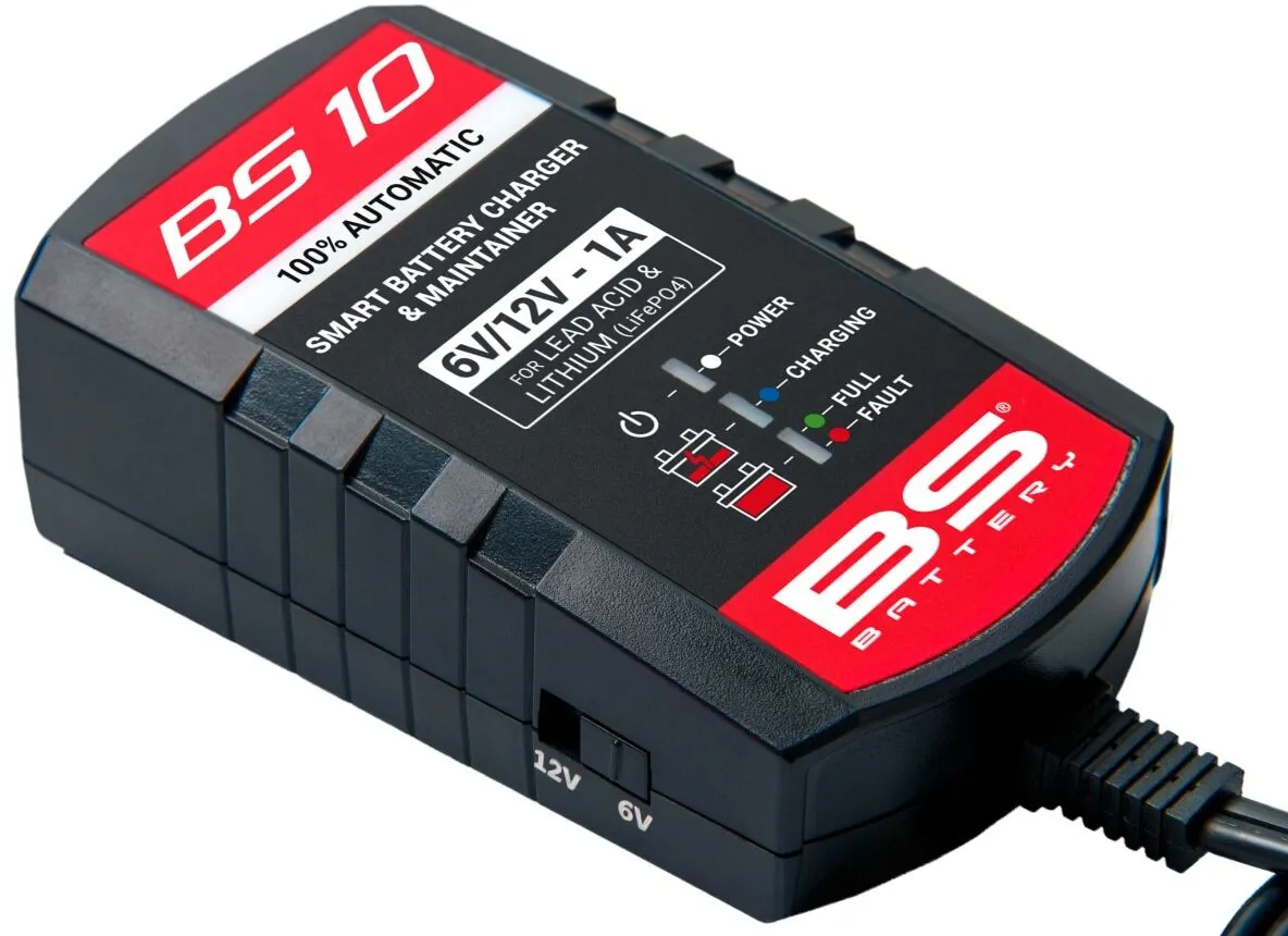 Designed for lead acid & lithium batteries, BS Charger BS 10 is an automatic 6V/12V smart battery charger and maintainer rated at 1A. Road trip friendly, light & compact, it is suitable for batteries up to 20Ah.