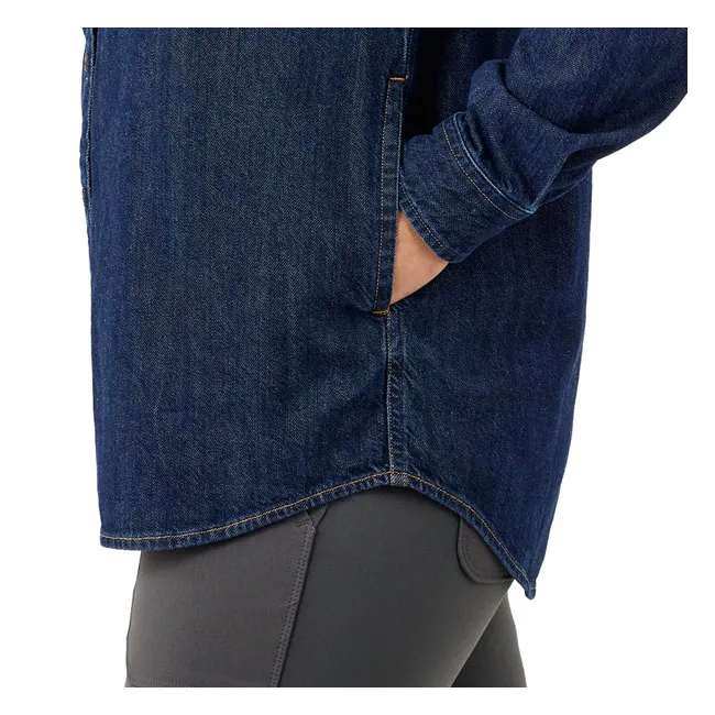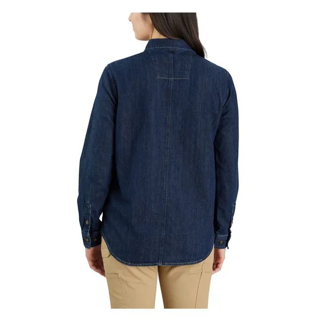 ×Wear this women's denim shirt of Carhartt to work or save it for the weekend. Either way, the soft midweight cotton denim is comfortable as well as durable. It has a relaxed fit so you can layer it over a t-shirt when the sun goes down for little bit of extra warmth. Features two chest pockets with button closure and left chest pocket with pencil opening and two lower front welt pockets.