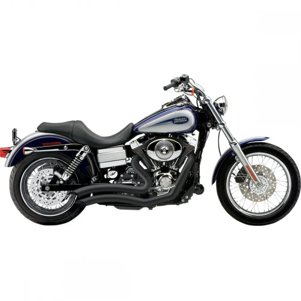 This system is available in two finishes, chrome (with a limited Lifetime Warranty) or a black ceramic coating. Both use single-piece, full-length 2.5-inch heat shields. Bikes are shown with the Cobra PowrFlo Air Intake System as well.