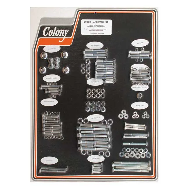 Each motor screw set contains all hardware like stock motor nuts, washers and studs for the specific engine in chrome or zinc plated. OEM reproduction hardware for early H-D models. Kit include, where applicable: