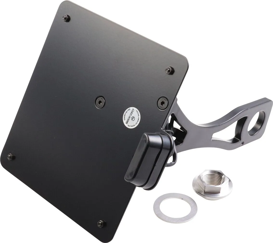 ×Cult-Werk side license plate holder with TÜV parts certificate for the listed license plate sizes and countries as well as a milled plate including slide-in frame for the license plate.