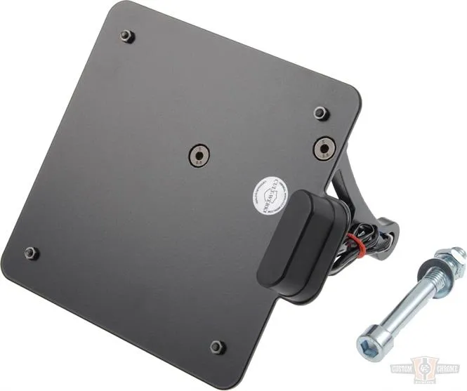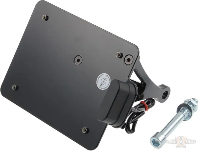 Extra short mount for a close to the bike installation for the integrated look. Mounts to left side wheel axle and includes all required installation hardware. TUV approved for 210x170mm size plates (Width x Height).