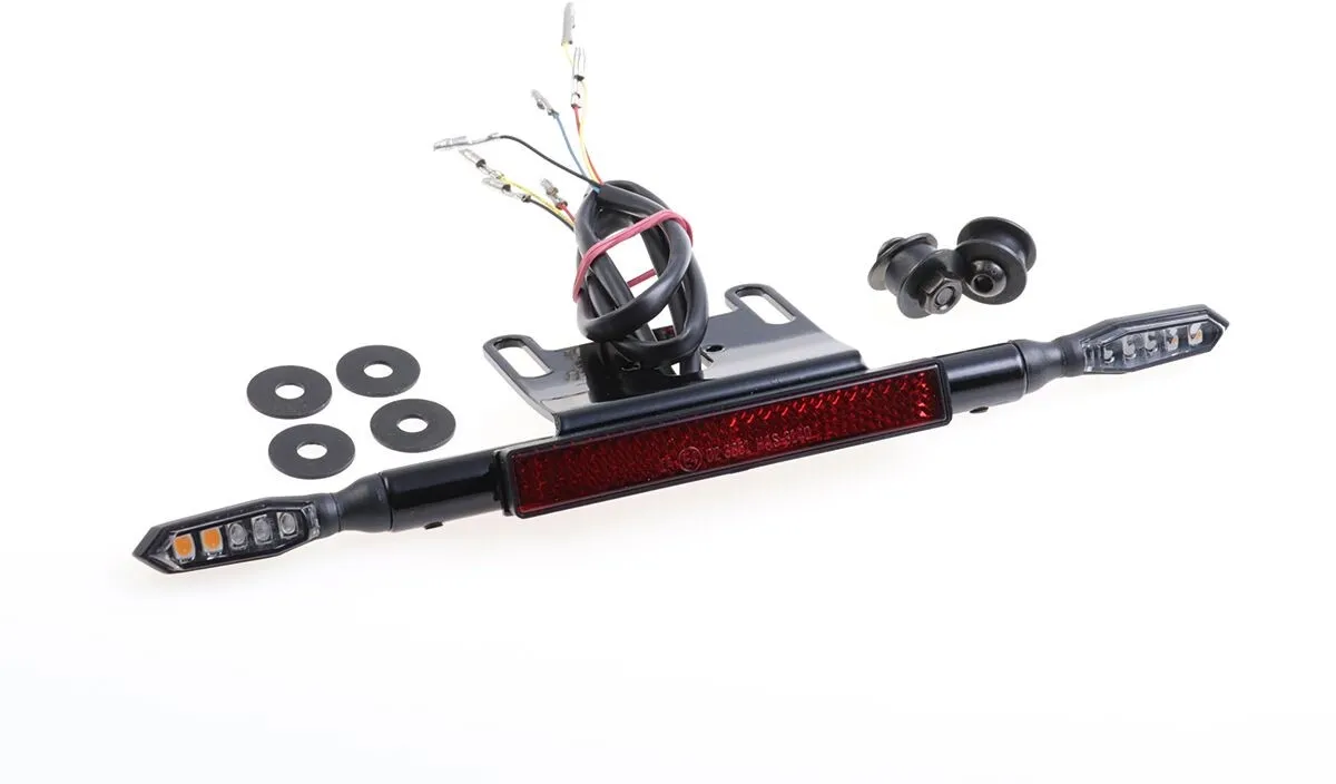 ×This license plate kit replaces the original licence plate holder, turn signals and run/brake light.