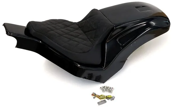 Perfect for installing a wider, up to 280 series, rear tire. Comes with a steel inner fender carrier, a sturdy 5-axis CNC machined ABS outer fender and a genuine leather seat.