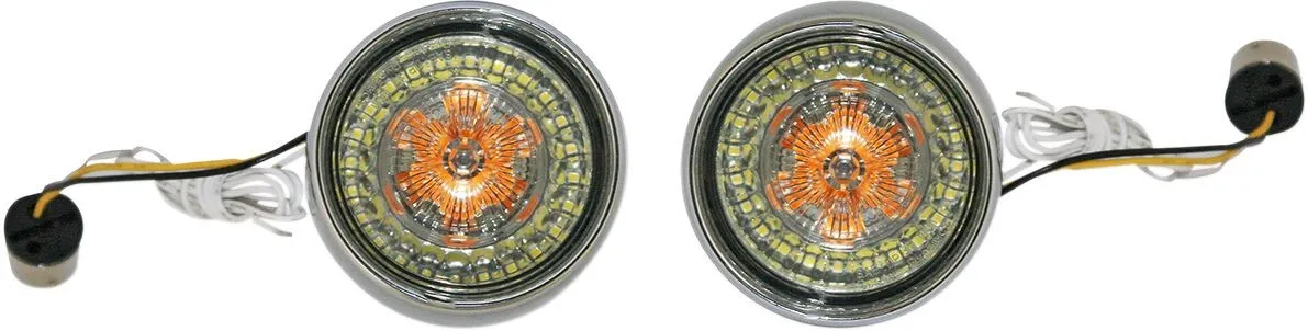 ×ProBEAM® Bullet Bezel Dynamic Ringz™ LED Turn Signals include ProBEAM® Amber/White Dynamic Ringz™ Inserts with choice of Chrome or Gloss Black ProBEAM® Bullet Bezel Turn Signal Adapters with built in DOT and SAE compliant smoked lens.