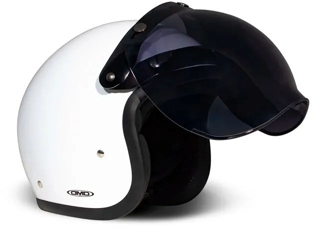 ×The Flip-Up bubble visor is designed for DMD Jet motorcycle helmets, applicable through the presence of buttons on the helmet shell itself. It also can fit on other brand helmets with a three button point. This visor can be raised and lowered at any time. The Flip-Up visor for open face helmets is available in several colors.
