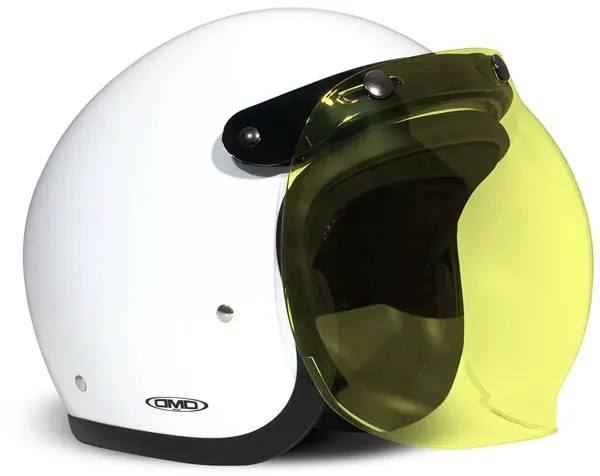 The Flip-Up bubble visor is designed for DMD Jet motorcycle helmets, applicable through the presence of buttons on the helmet shell itself. It also can fit on other brand helmets with a three button point. This visor can be raised and lowered at any time. The Flip-Up visor for open face helmets is available in several colors.