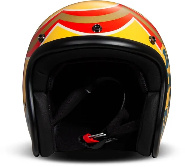 ×Embrace the fusion of classic style and modern functionality with the DMD Retro helmet, a nod to the iconic 70''s design. This helmet isn''t just a protective gear but a statement piece, crafted for those who dare to stand out. With its ECE 22.06 approved fiberglass shell available in three sizes, it offers a snug fit. The helmet is bluetooth ready, features integrated snaps for visors, and boasts a luxurious, washable lining with Velcro for a custom fit. Secured with a padded chin strap and a reliable Double D-ring closure, this helmet is the perfect blend of vintage charm and contemporary comfort.