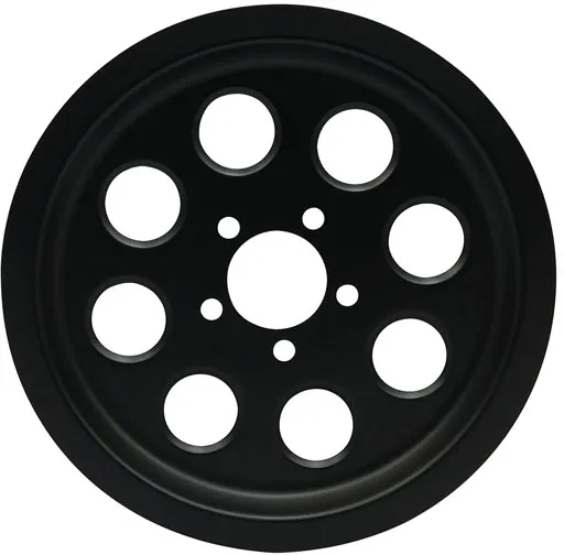 ×Matte black. Fully covers the OEM rear wheel pulley on the outside. Gives the pulley that black-out appearance.