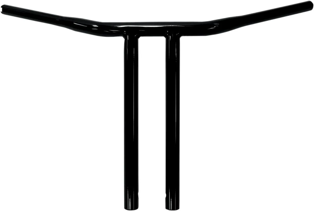 Center Width: 23 cm (9") Features: Notched for Throttle By Wire| Straight Riser End Rise: 35,5 cm (14") Color/Finish: Black| Gloss Material: Steel Product Name: Handlebar Base Color: Black Handlebar Diameter: 32 mm (1-1/4") Base Finish: Gloss Units: Each Type/Bend: Buffalo| T-Bar Width: 73,5 cm (29") Pullback/Sweep: 12,5 cm (5")