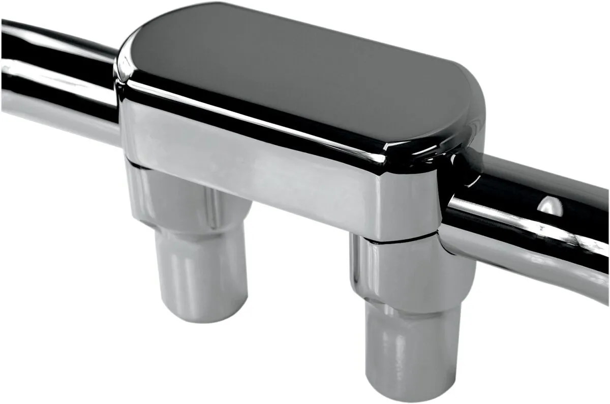 Machined from billet aluminum with a chrome or black powder-coat finish. Fit any handlebars that have a 38mm (1 1/2") diameter in the clamping area. Sold as a kit of two risers, top clamp and hardware. Risers tapped for 1/2" -13 bolts. Made in the U.S.A.
