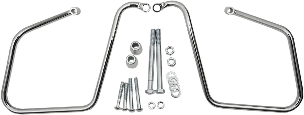×Chrome-plated steel brackets hold throw-over saddlebags away from brake caliper and swingarm