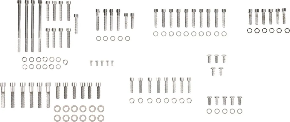 Complete motor sets for 2007 and later Big Twin include bolts for primary, cam, cam sensor, derby, rocker box, transmission top, transmission side, lifter block and clutch covers.