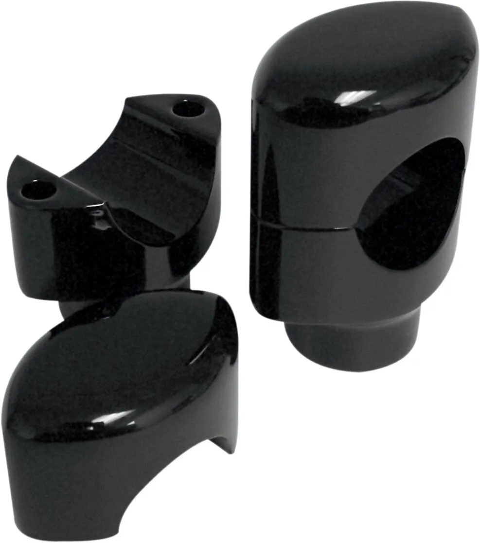 Risers are machined from billet aluminum. Brilliant show-chrome or smooth black finish. For use with Drag Specialties 38mm (1 1/2") Big Buffalo bars or other bars with a 38mm (1 1/2") diameter clamping area. use 1/2" -13 riser bolts, NOT INCLUDED. Sold in pairs. Made in the U.S.A.
