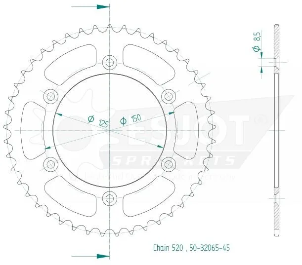 Type: Rear COLOR: Black Units: Each POSITION: Rear Product Name: Sprocket TEETH: 45 PITCH: 520 MATERIAL: Steel QSTE460