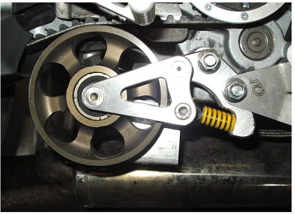 This spring loaded item is designed to maintain a tension from 10 to 50kg (depending on model) regardless of swingarm position and will help lengthen belt and bearing life.