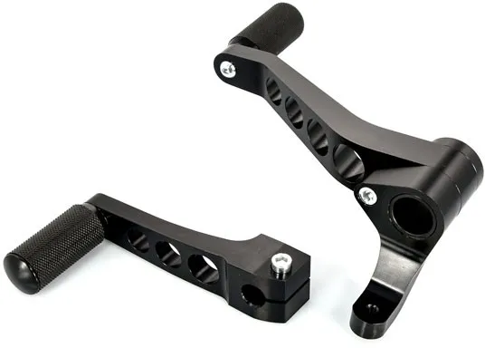 Bolt on kit, mounts directly on the foot rests and replaces completely the original levers.