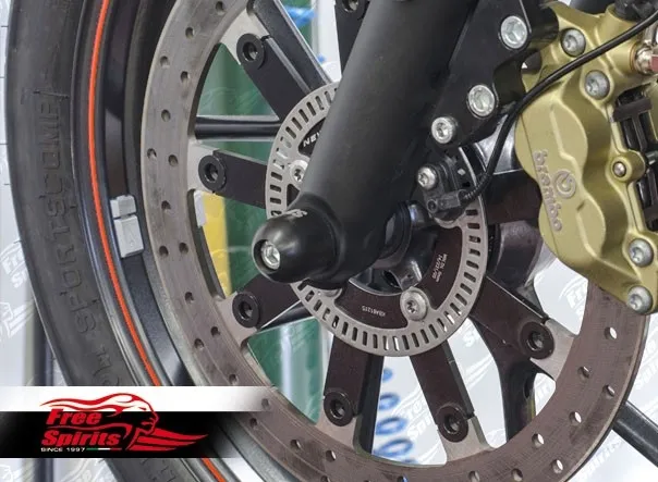 Fork crash pads use a special material that slide instead caching-grasping asphalt and this is why fastener bolt are located internally, instead been out at the same level.
