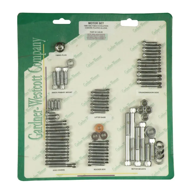 • Gardner Westcott Motor Screw Sets in Chrome Allen Finish For 1986 Softail Only Models (C-80-85)
