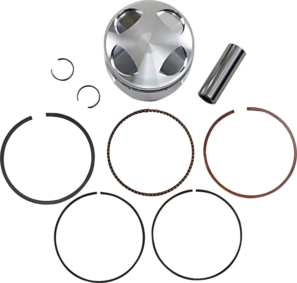 Piston Average Weight: 294 grams Piston Volume: 0.00 cc One cylinder piston kit. Includes: • 1x Piston • 1x Ring Set • 1x Wrist Pin • 2x Circlips