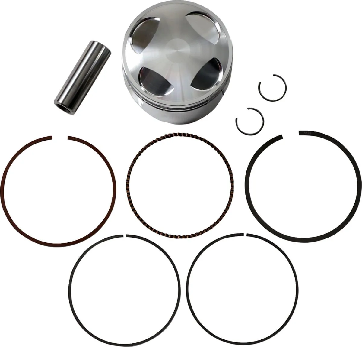 Piston Average Weight: 298 grams Piston Volume: 0.00 cc One cylinder piston kit. Includes: • 1x Piston • 1x Ring Set • 1x Wrist Pin • 2x Circlips
