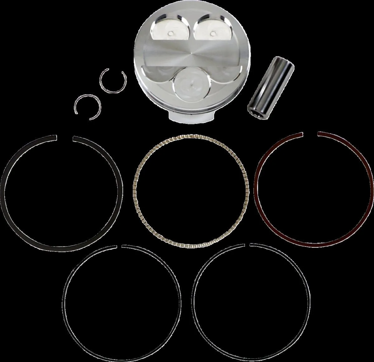 Piston Average Weight: 287 grams Piston Volume: -6.60 cc One cylinder piston kit. Includes: • 1x Piston • 1x Ring Set • 1x Wrist Pin • 2x Circlips