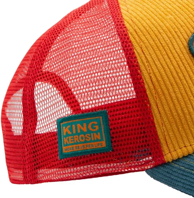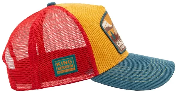 ×Road trip vibes at your fingertips: The King Kerosin cap with its large California embroidered patch combines a sense of adventure with a retro flair. The wide corduroy front meets the airy mesh back, ideal for relaxed days on the go. Thanks to the snapback closure, the cap fits exactly the way you need it to. California dreaming in cap form!