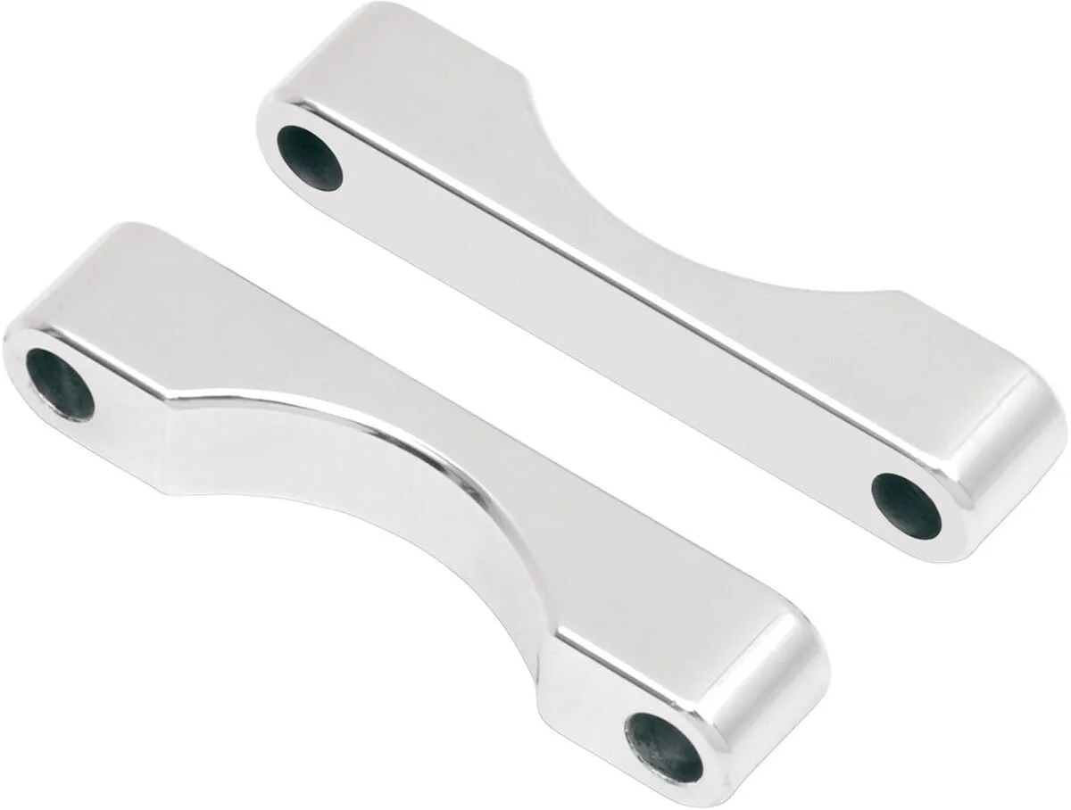 The spacers are 0.750" thick and hole spacing is 3" on center to fit FLT or FLHT style forks.