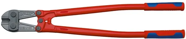 ×Overall length: 760mm. Weight: 4250 gram. The ingenious lever action offers 60% effort reduction when compared to Knipex high leverage cutters of the same length. Cuts up to 48 HRC hardness. With gripping surface below the joint for wires with 1mm diameter and larger. Manufactured from forged chrome vanadium tool steel that is multi-stage oil hardened. Cutting edges are additionally precision induction hardened to approx. 62 HRC and will cut from 11mm steel up to 19 HRC, 9mm to 40 HRC and 8mm to 48 HRC diameter steel. Comes with multi-component grips and a gray phosphate coating.