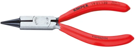 ×Overall length: 130mm. Weight: 73 gram. Manufactured from special forged tool steel that is multi-stage oil hardened. Also called Jewellers'' Pliers. Comes with precision ground round jaws with pointed tips. Grips and bends fine wires. The cutting edges are additionally precision induction hardened to approx. 60 HRC. Cuts 2.2mm o mild steel up to 1.6mm o hard wire. Comes with plastic coated grips, a polished head and black phosphate coating.