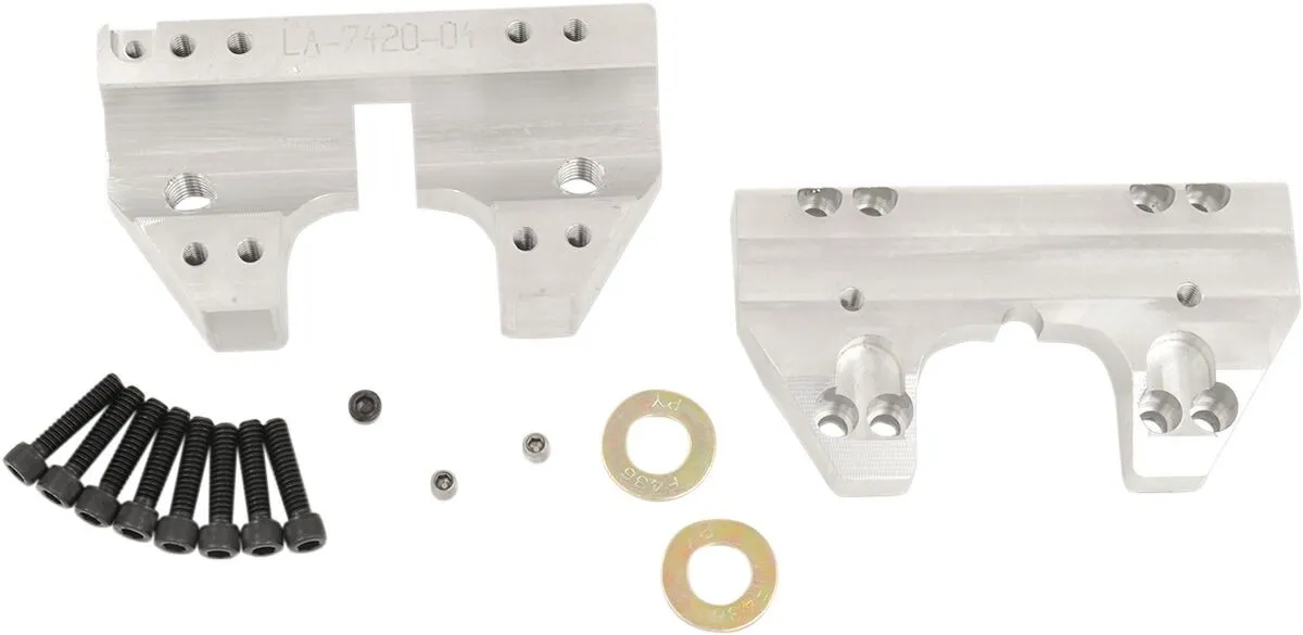 Fit under the stock cover. Include all necessary installation hardware. CNC-machined from 6061 T-6 aluminum with a raw finish. tapped for 1/2" -13 riser bolts. Top clamp has tapped holes to lock handlebars in place. Come with setscrews. Made in the U.S.A.