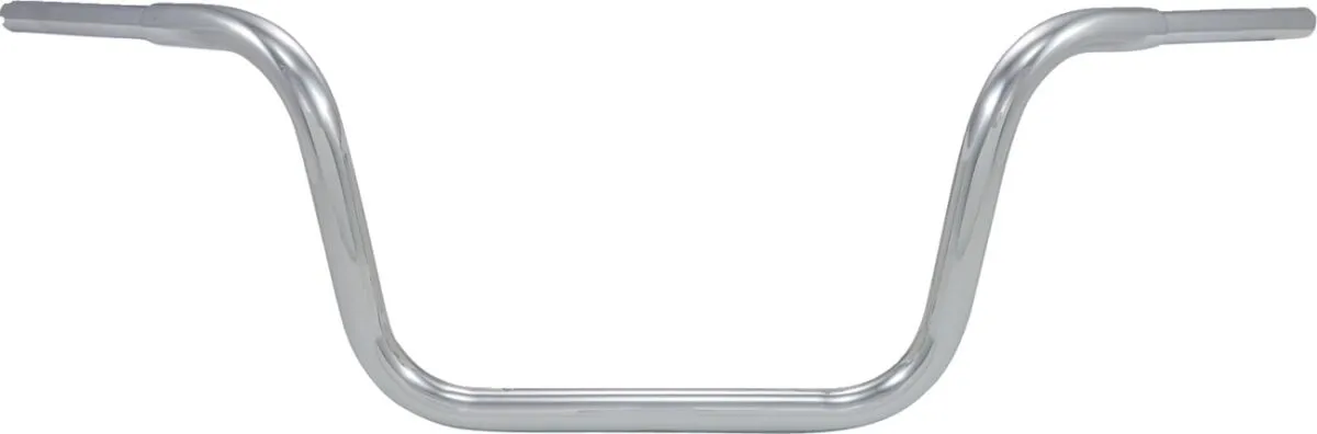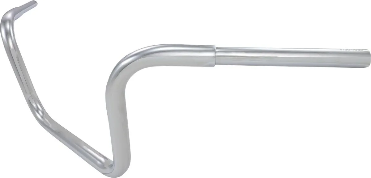 Base Color: Silver Handlebar Diameter: 32 mm (1-1/4") Rise: 28 cm (11") End Rise: 28 cm (11") Product Name: Handlebar Pullback/Sweep: 25,5 cm (10") Color/Finish: Chrome Height: 28 cm (11") Center Width: 24 cm (9-1/2") Base Finish: Chrome Controls Diameter: 25,4 mm (1") Material: Steel Features: Dimpled| Pre-Drilled| Smooth, Unknurled Clamping Diameter: 32 mm (1-1/4") Type/Bend: Ape Hanger| Hefty Units: Each Width: 97 cm (38")