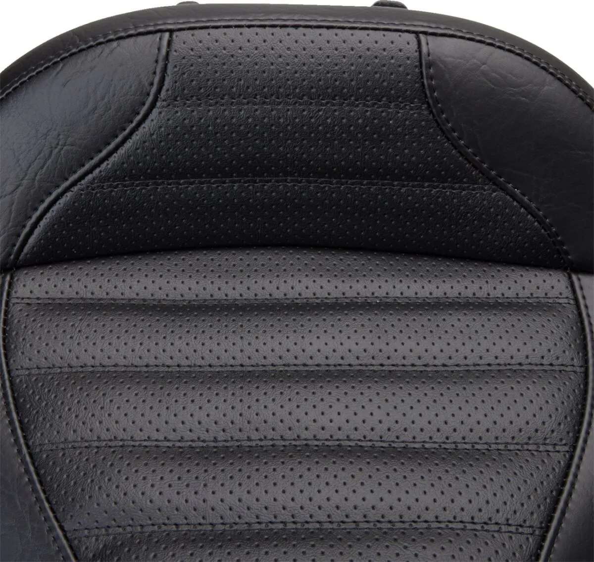 Features include a blend of smooth and perforated vinyl with a classic double-stitch tuck-&-roll design.