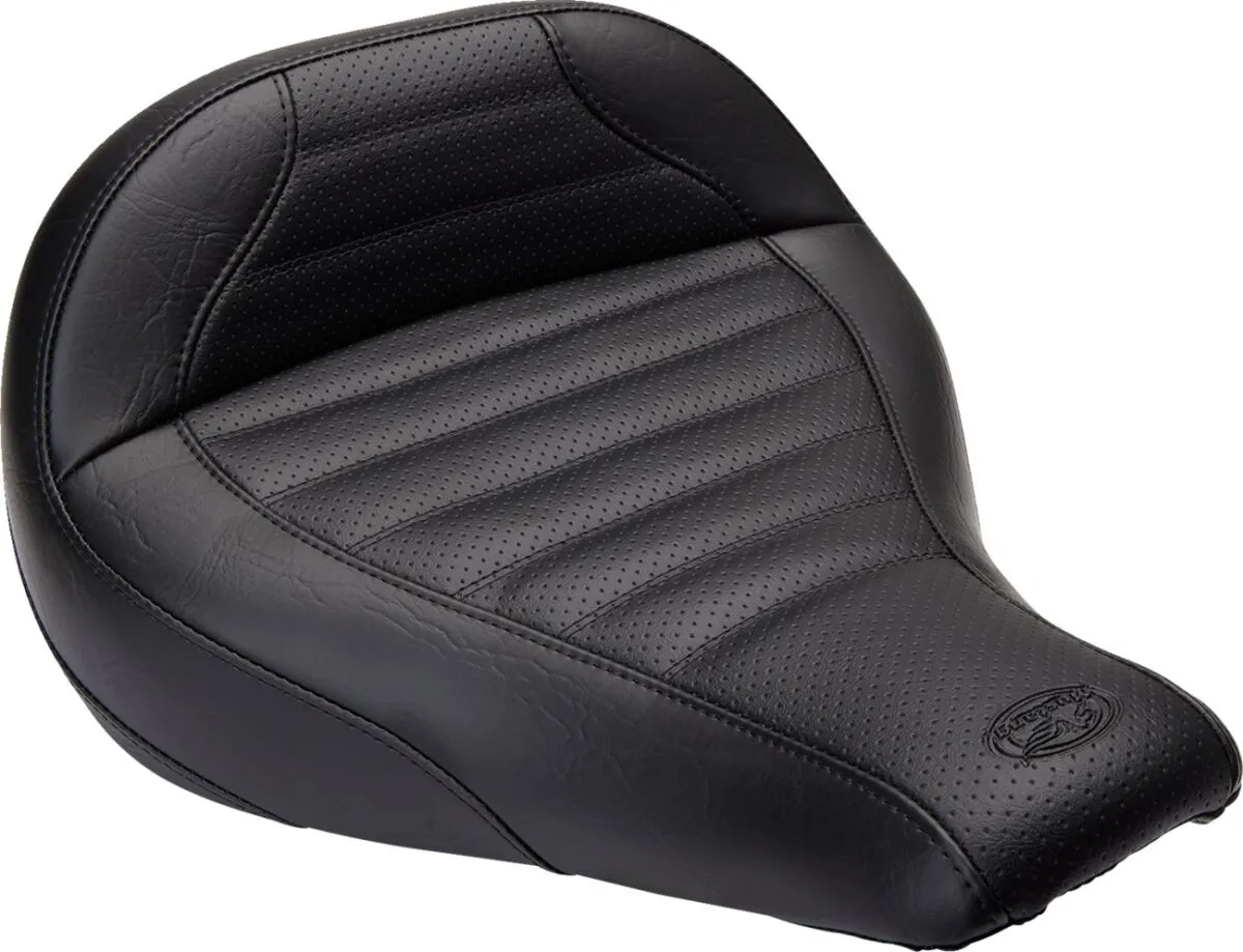 Mustang's Standard Touring solo is 2.5" wider than the stock Fat Boy seat, offering a full 15" width for the driver.