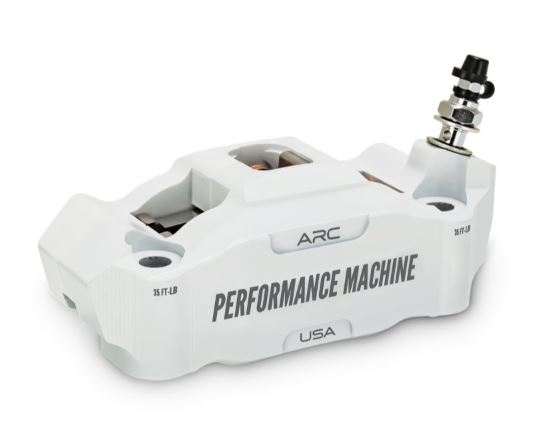 • Performance Machine Race Series 4 Piston Radial Mount Front Right Caliper With ARC Technology In White Finish For Harley Davidson Models (0052-2426-WC)universal fitment
