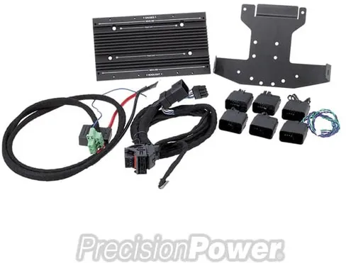 ×This kit allows you to install the Precision Power MAA4.400 (MCS 999394) compact-chassis amplifier in 2014-up Touring motorcycles. Kit includes everything you need to install your new amp, including wiring harnesses, power/ground, Boom Audio bypass plugs, and adapters for lower front and Tour-Pak speakers. You'll even get mounting hardware.Highlights:Brackets for amp installation in Road Glide & Street Glide fairingsT-Harness for plug-n-lay integration to stock wire harnessHigh-Level input & speaker output connectors for MAA4.400 (MCS 999394)8ga power & ground wire with in-line fuse holder includedPower & ground wire connector pre-wired for MAA4.400 (MCS 999394)Wire harness accommodates installation to alternative amplifiersCVOT / Boom AudioT amplifier by-pass plugs included