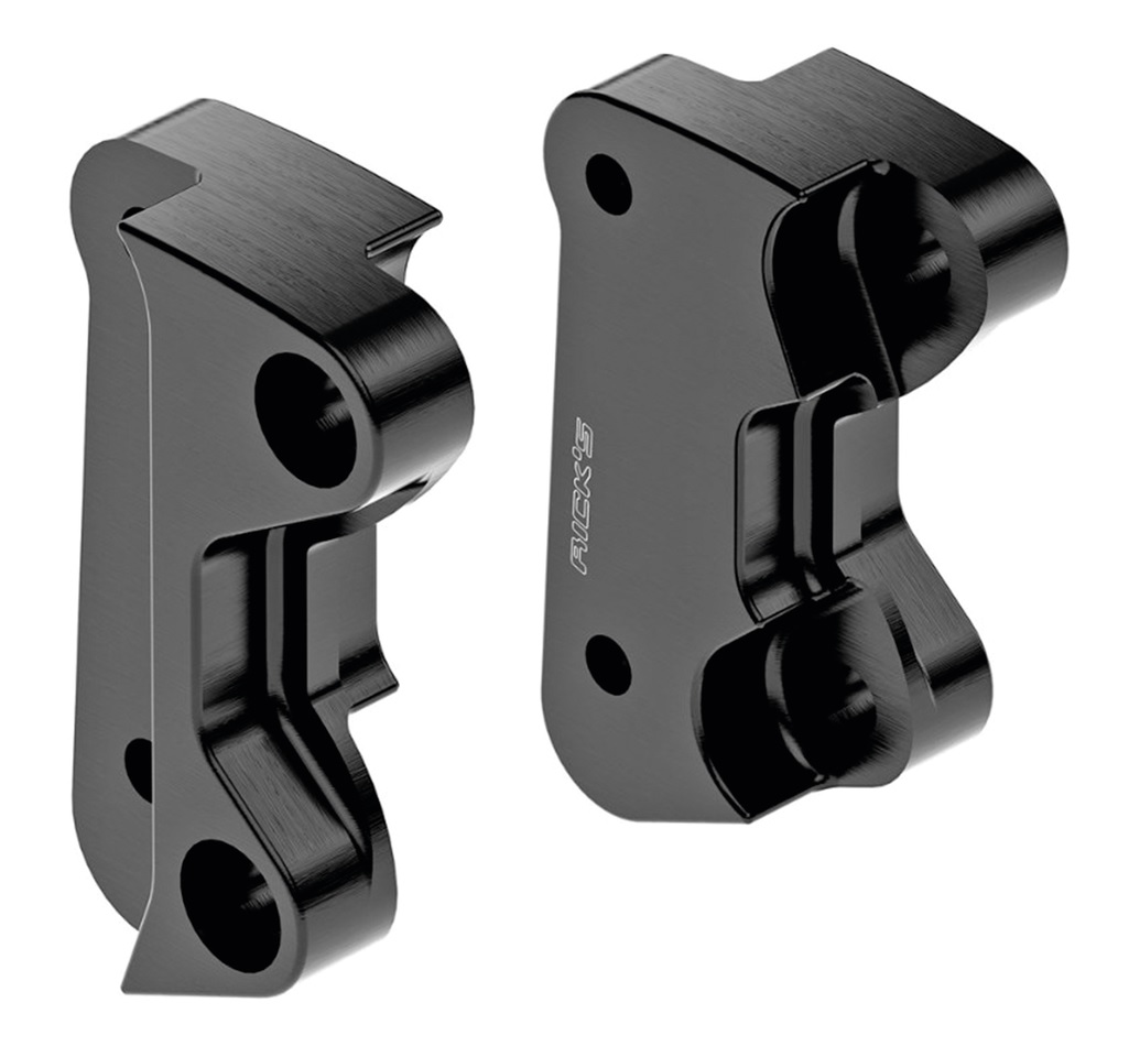 ×These trick caliper brackets allow you to use the stock brake calipers with oversized 13"" (330mm) brake discs. Increasing the brake disc diameter drastically improves braking power with no changes to calipers, brake lines, master cylinder or ABS system. Brackets are CNC machined from billet aluminum.