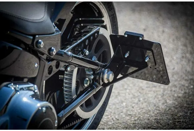 A lateral license plate holder gives you a clear view on the tail and tires.
