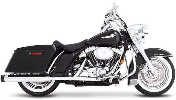 Rinehart’s 4″ slip-on exhaust completes the look of your Touring model Harley-Davidson® with your choice of chrome or black, and your choice of chrome or black standard or Moto Series end caps.