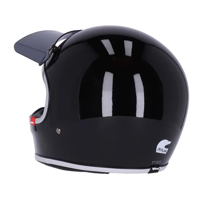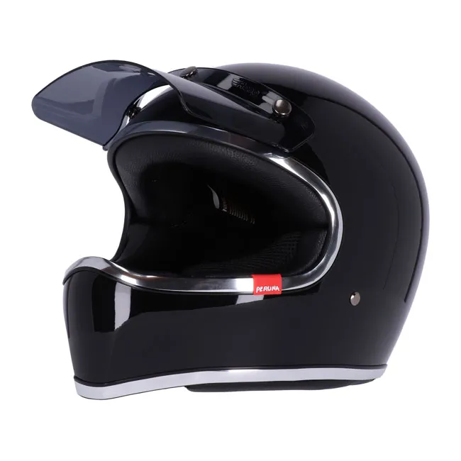 • Features a classic double D-ring adjustable chinstrap with microtech fleece padding, gunmetal grey integrated visor/shield snaps, Microtech fleece comfort lining which is remove- and washable, with premium perforated leather detailing, ECE-R22.05 approval, RQ XXL retro trim and removable dark smoke translucent peak.