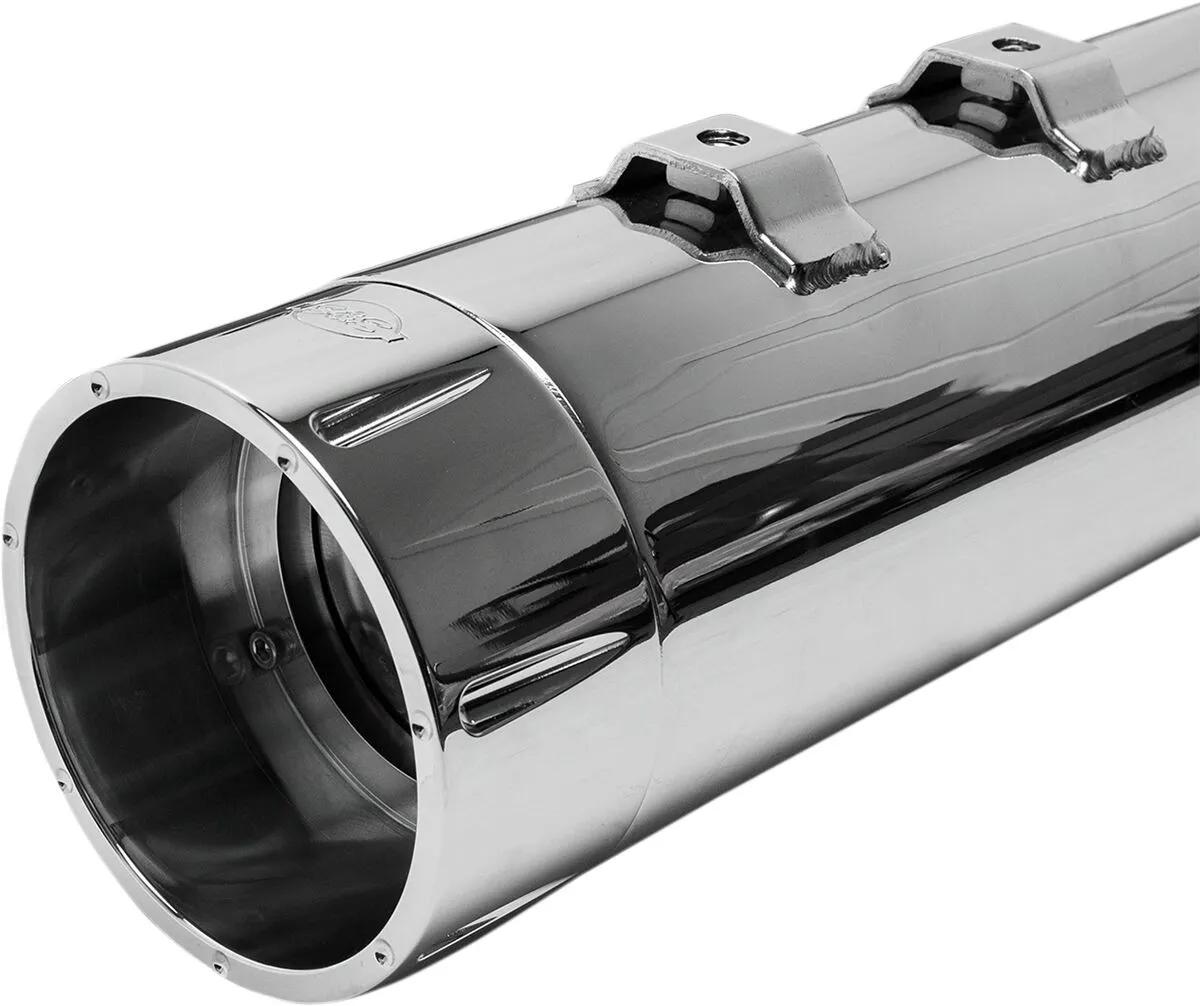 4.5" Slip-On Mufflers are the result of decades of riding, racing and tuning. Combining both a stainless steel perforated with RaceTEX cartridge packing, they create a deep rumble and improved horsepower and torque, all while adding a unique look with styled aluminium end caps.
