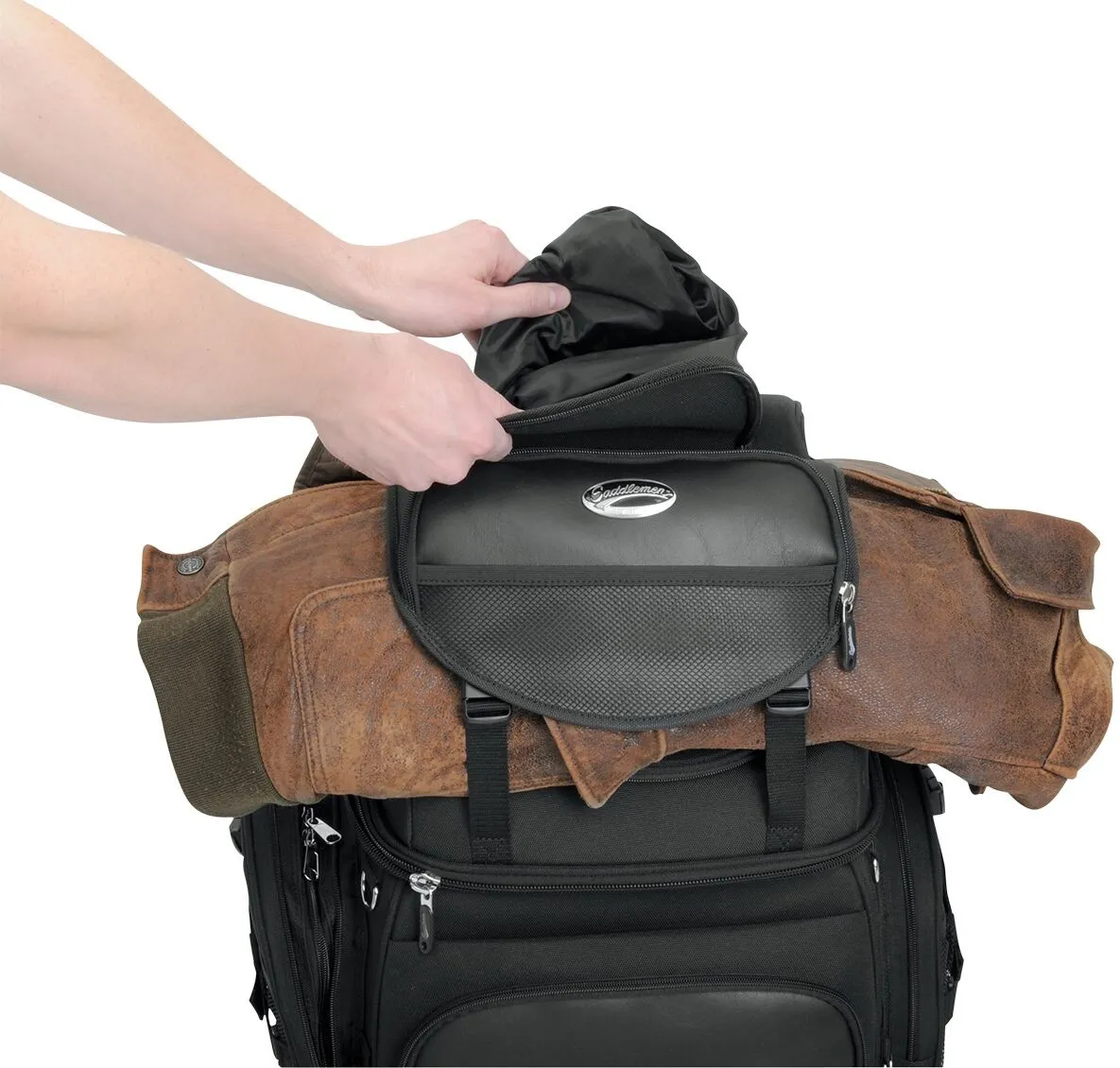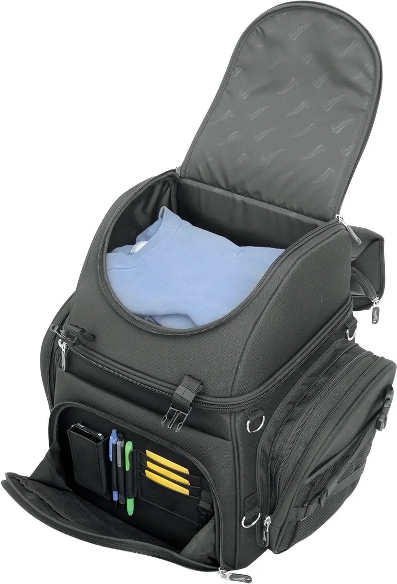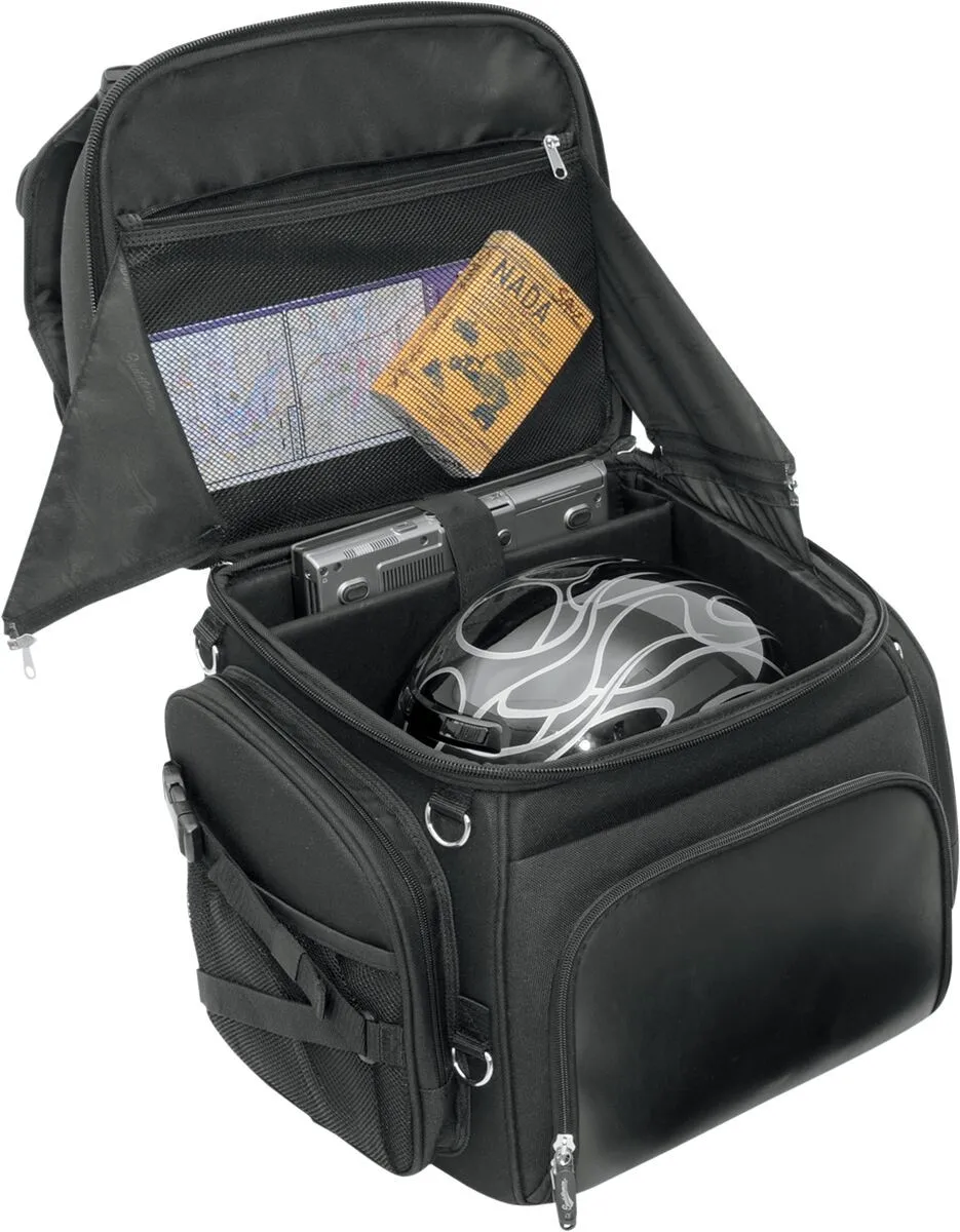 Great versatility - can either be used as a sissy bar bag, or as a "back seat bag," set between rider and tour back on "Dresser" style motorcycles