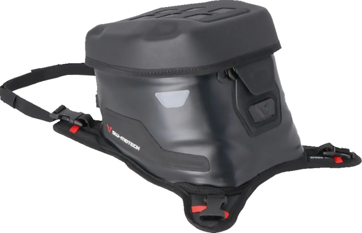 Waterproof tank bag with 5.5 liters of storage space is suitable for many motorcycle tanks; can even be placed on small enduro machines with a narrow tank