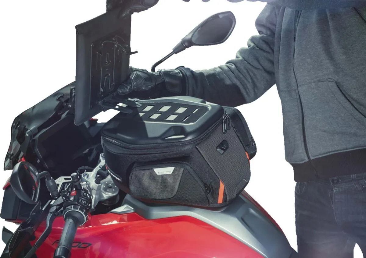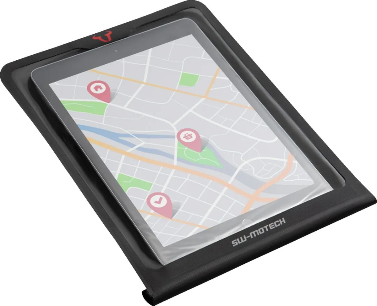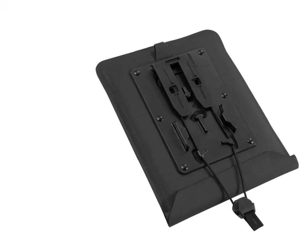 The waterproof Tablet-Drybag is the right transport solution for maps and tablets on PRO tank bags: with two retention arms, the Tablet-Drybag is inserted into the MOLLE system and additionally secured by an elastic band on the tank bag. You can find detailed information on how to attach the Tablet -Drybag to the MOLLE attachment in the operating instructions. The tablet itself is waterproof in the plastic case with a large clear PVC window. With the Tablet-Drybag, almost all standard-sized devices can be mounted on the motorcycle for safe navigation. Alternatively, the Tablet-Drybag can also be used for conventional road maps.