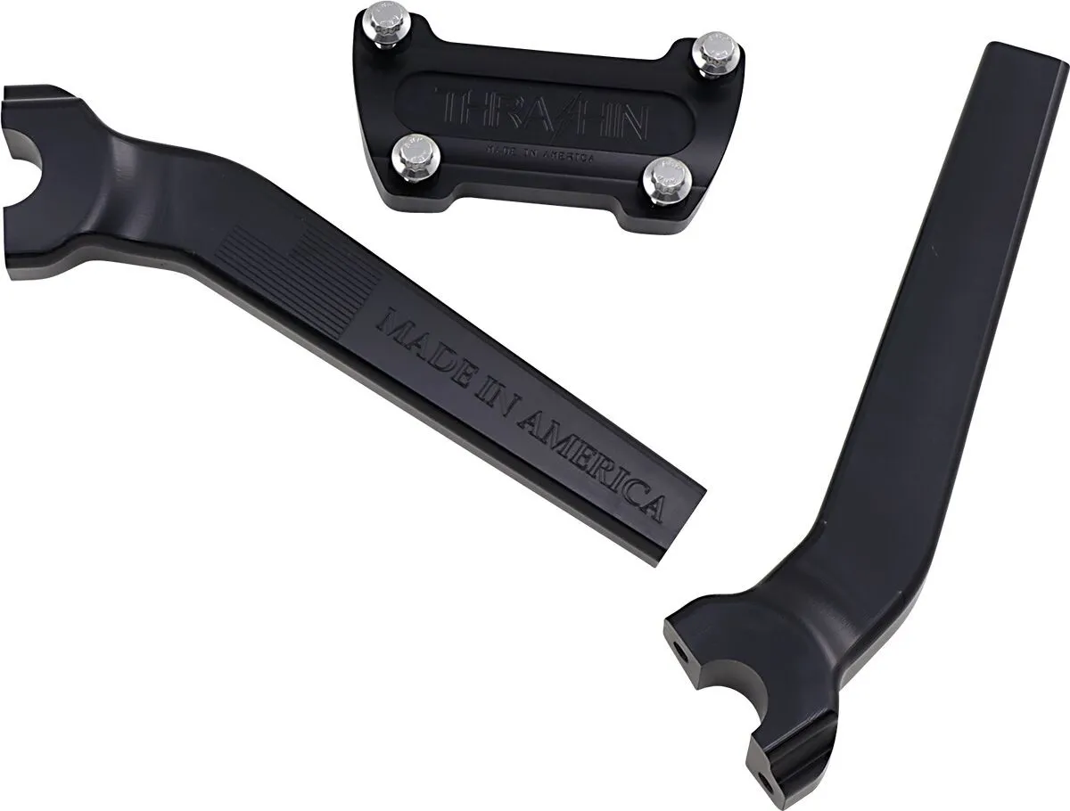 Option 1: You'll need to purchase the Road Glide riser adapter TSC-2207. This keeps the gauges in the stock position but requires modification to the gauge frame. The OEM brake and clutch perch will also need to be replaced when using aftermarket bars, Thrashin part number TSC-2703-4 / TSC-2703-3