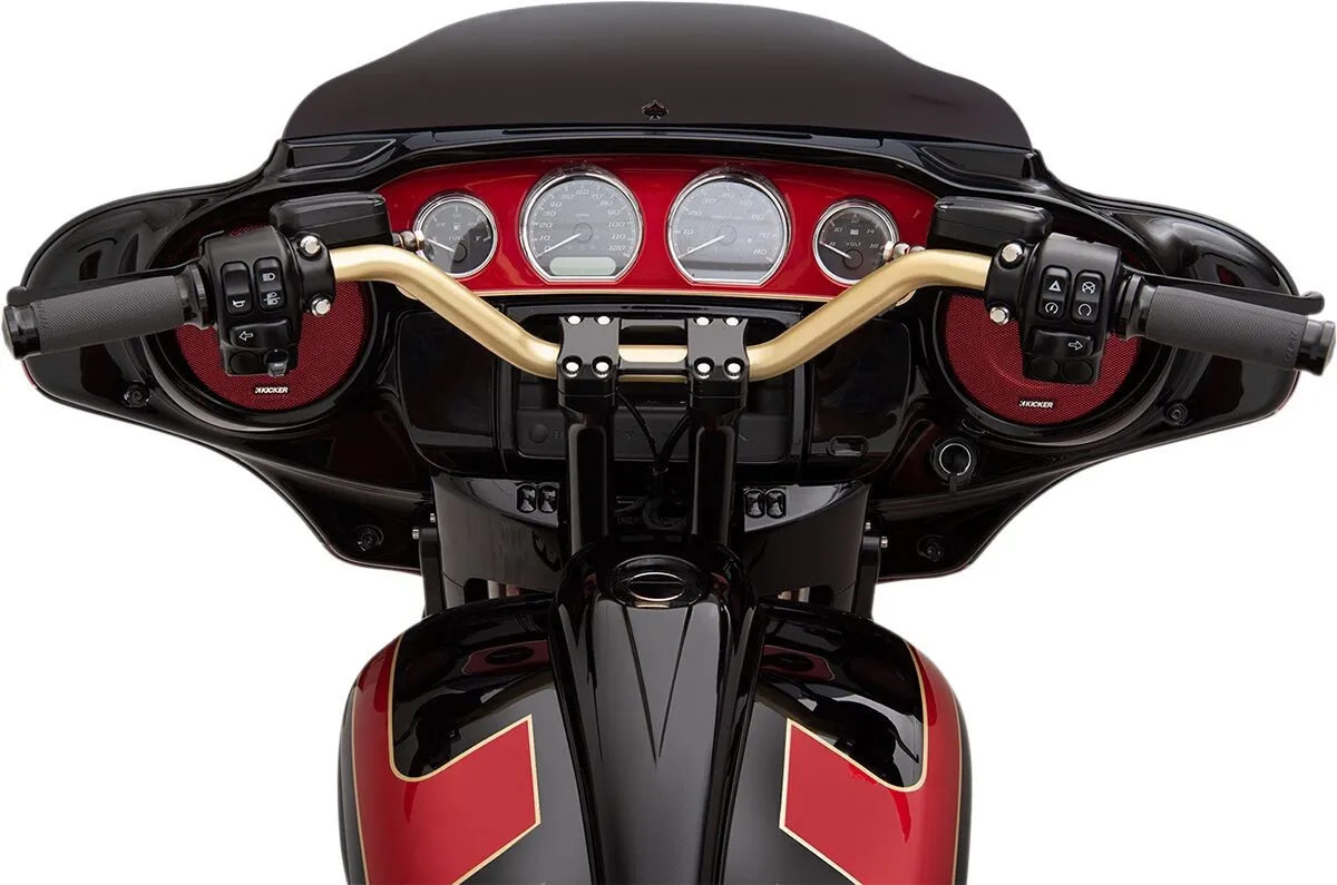Width: 76 cm (31") Product Name: Handlebar End Rise: 10 cm (4") Controls Diameter: 25,4 mm (1") Color/Finish: Black Base Color: Black Handlebar Diameter: 25,4 mm (1") Material: Steel Features: Knurled Center| Pre-Drilled Units: Each Pullback/Sweep: 25° Clamping Diameter: 25,4 mm (1") Type/Bend: Mid